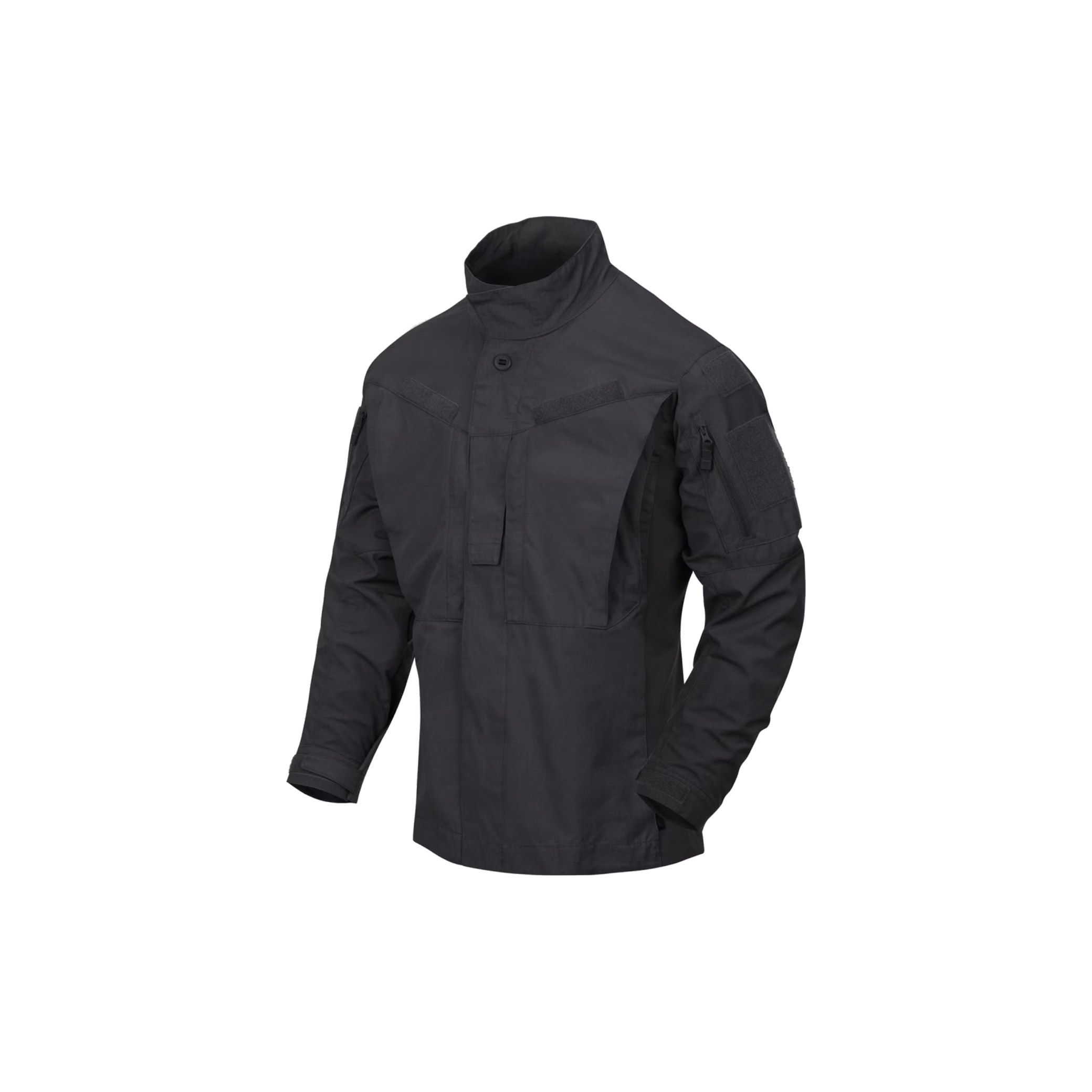 HELIKON-TEX® Кітель MBDU (Modern Battle Dress Uniform) є частиною модернізованої польової форми BDU з лінійки HTX Patrol Line. Уніформа MBDU виготовлена з високоякісних тканин (змішаної тканини NyCo Ripstop: 52% нейлону, 48% бавовни; а також еластичного матеріалу VersaStretch®), ретельно підібраних для забезпечення не тільки високої міцності, але й свободи пересування, що є надзвичайно важливим фактором в польових умовах. Кітель має анатомічний крій зі злегка приталеним силуетом і бічними вставками, виготовленими з тканини VersaStretch®. Класичний комір можна перетворити на комір-стійку і защіпнути липучкою. На грудях є два кишені на блискавках, а над ними Velcro-панелі для ідентифікаційних патчів. Додатково, в центральній частині розміщений клапан для кріплення муфти рангу. Сітчасті вставки під пахвами забезпечать максимальну повітропроникність. Нарукавні кишені закриваються вертикальними блискавками. На кишенях і над ними пришиті липучки для кріплення емблем і патчів.