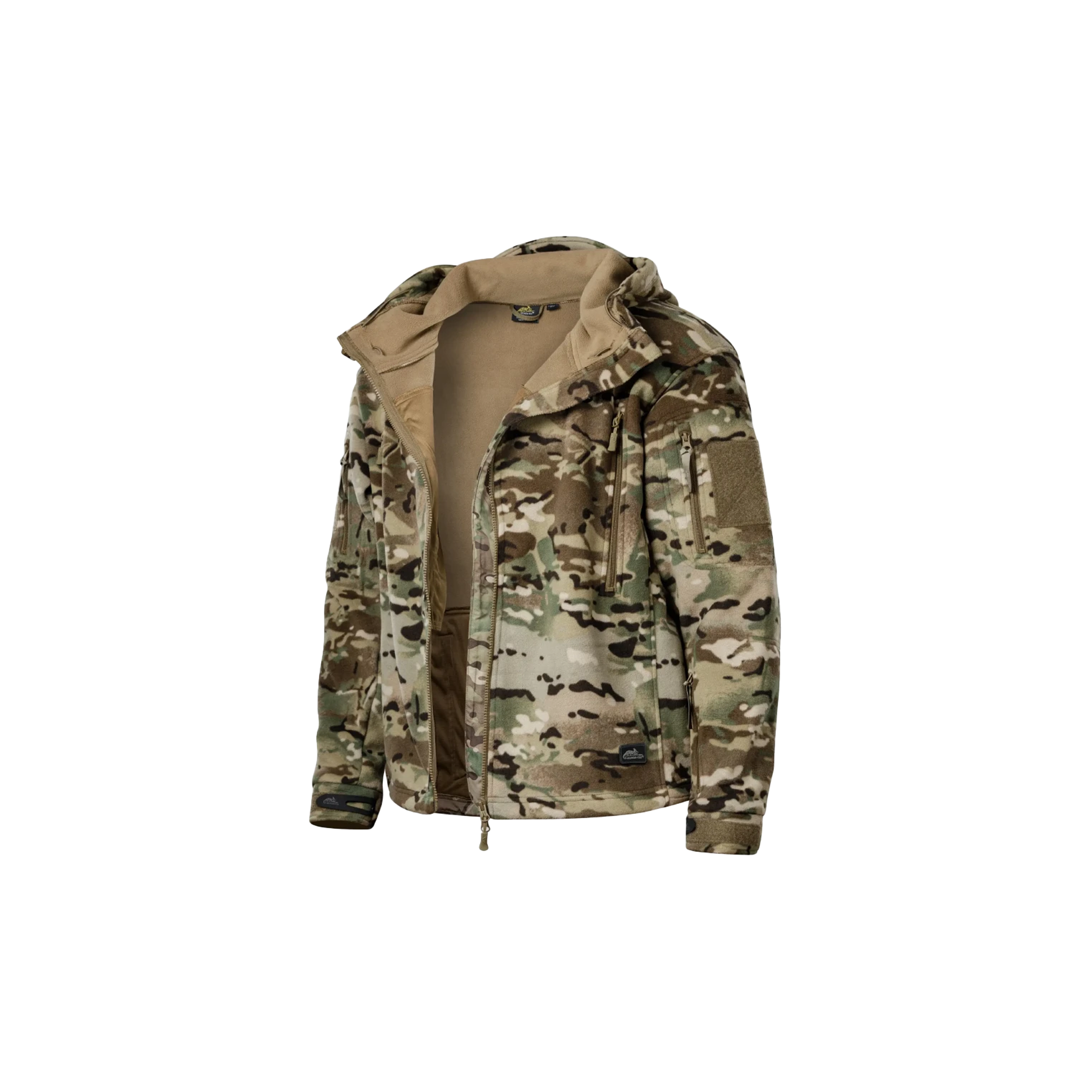 Helikon-Tex® PATRIOT Jacket Multicam – тепла флісова куртка з капюшоном. Завдяки унікальним властивостям матеріалу Double Superfine Fleece 390g/m² відмінно утримує тепло, забезпечує надійний захист від холоду. Плечі, комір та лікті куртки посилені міцним нейлоном з метою підвищення стійкості до стирання.